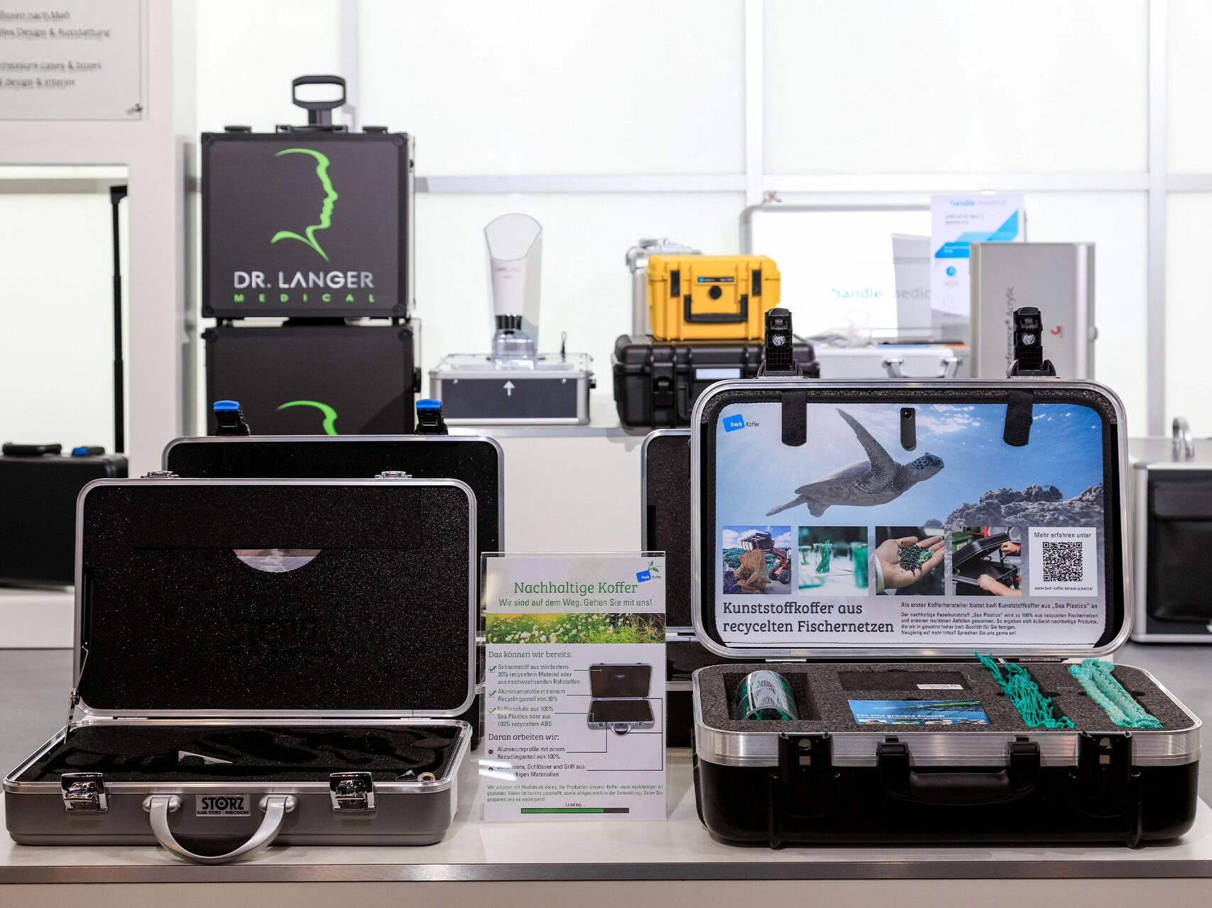 Nachhaltige Produkte gewinnen immer mehr an Bedeutung. Auch uns ist dies wichtig, daher stellten wir auf der MEDICA unsere ersten nachhaltig produzierten Koffer vor. Ausgehend von einem unserer Kundenkoffer fertigten wir nahezu identische Alternativen. Diese bestehen aus: